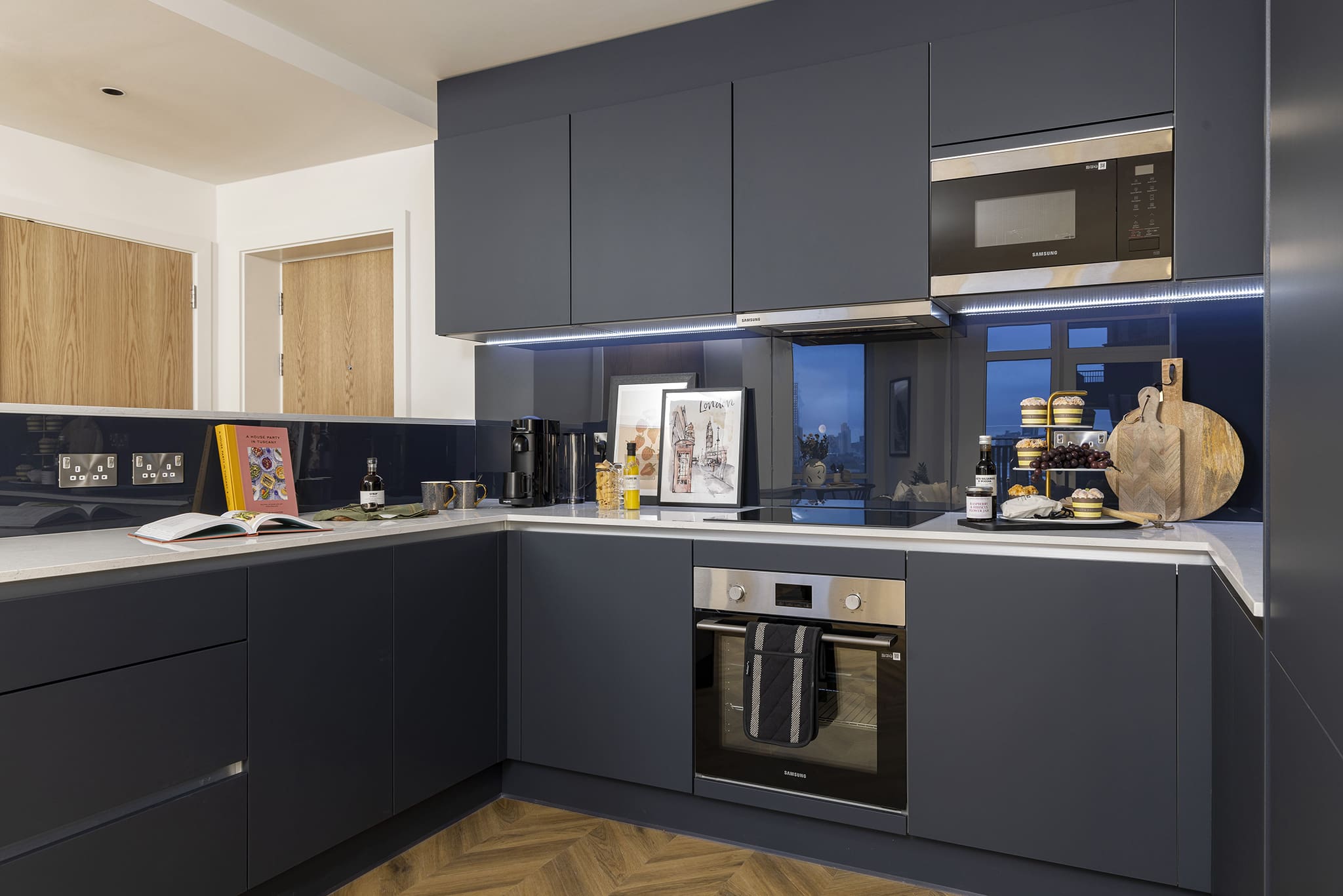 - Built-in Samsung appliances to include single oven, induction hob, microwave, dishwasher, and fridge freezer
