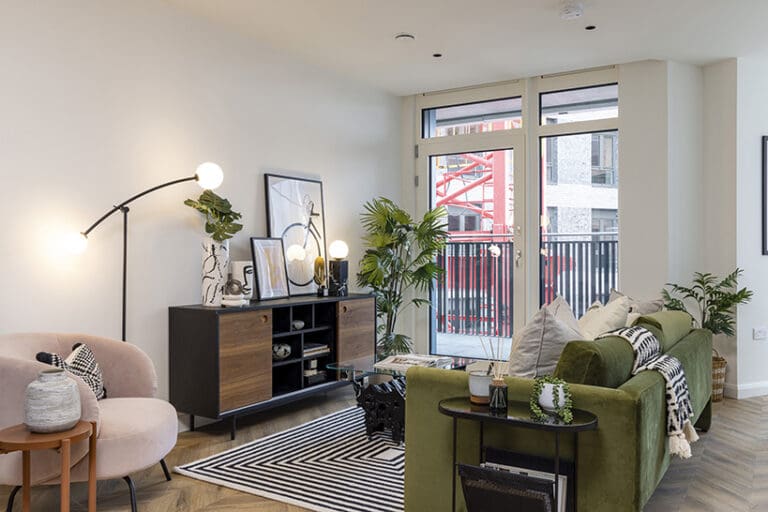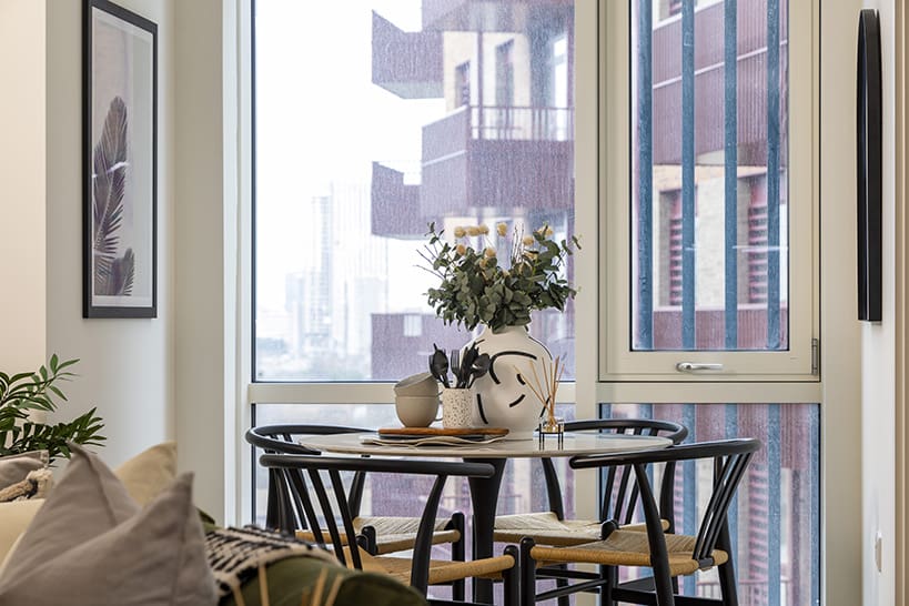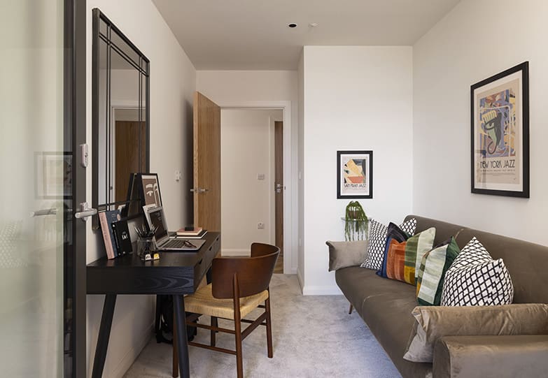 Stretch out above East London in our contemporary three-bedroom apartments, designed to adapt to your lifestyle needs. Featuring two bathrooms, a spacious open-plan living area with floor-to-ceiling windows, generous bedrooms and a private balcony to take in the city views.